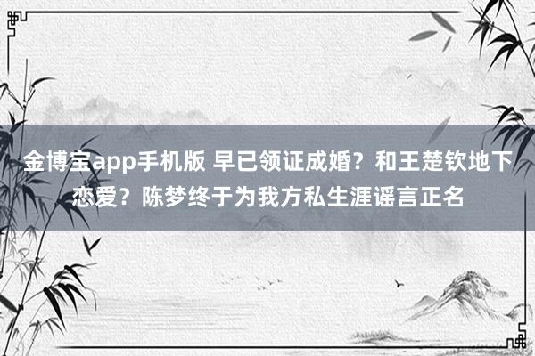 金博宝app手机版 早已领证成婚?和王楚钦地下恋爱?陈梦终于为我方私生涯谣言正名