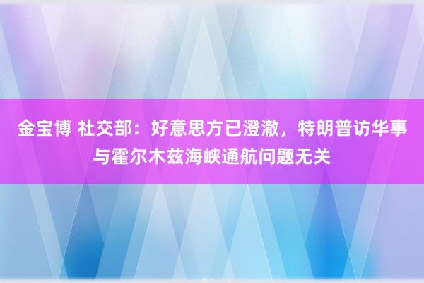 金宝博 社交部:好意思方已澄澈,特朗普访华事与霍尔木兹海峡通航问题无关