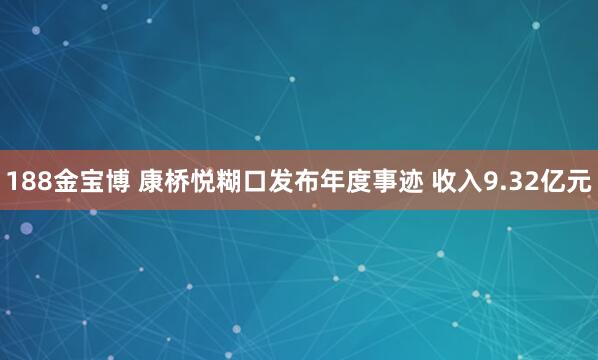 188金宝博 康桥悦糊口发布年度事迹 收入9.32亿元