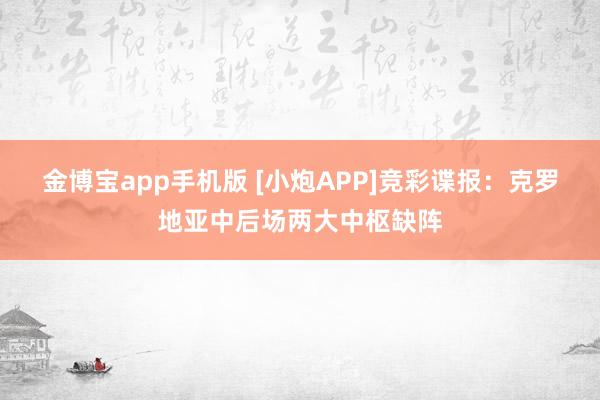金博宝app手机版 [小炮APP]竞彩谍报:克罗地亚中后场两大中枢缺阵
