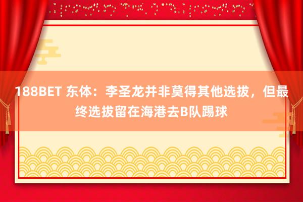 188BET 东体:李圣龙并非莫得其他选拔,但最终选拔留在海港去B队踢球