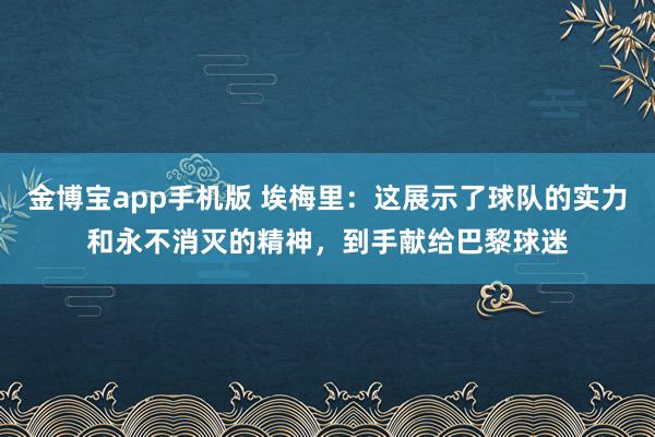 金博宝app手机版 埃梅里:这展示了球队的实力和永不消灭的精神,到手献给巴黎球迷