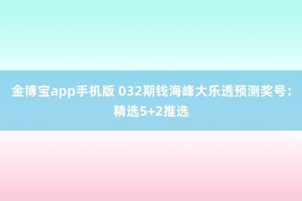 金博宝app手机版 032期钱海峰大乐透预测奖号:精选5+2推选