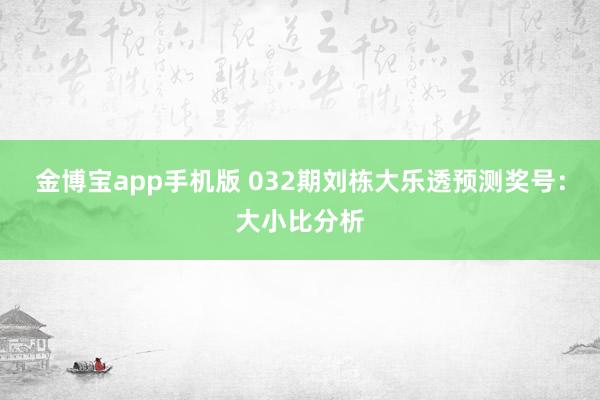 金博宝app手机版 032期刘栋大乐透预测奖号:大小比分析