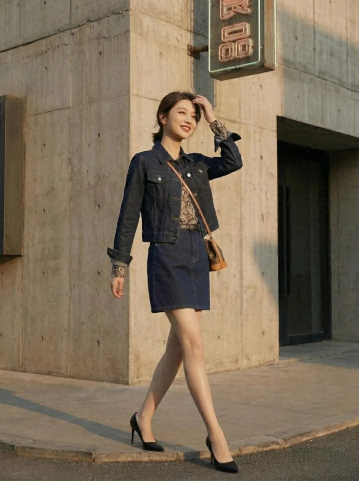 188BET 深色牛仔裙套装搭配蟒纹衬衫, 也太飒了吧