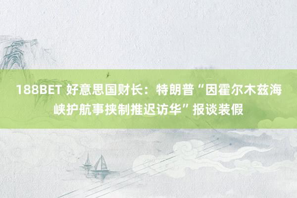 188BET 好意思国财长:特朗普“因霍尔木兹海峡护航事挟制推迟访华”报谈装假