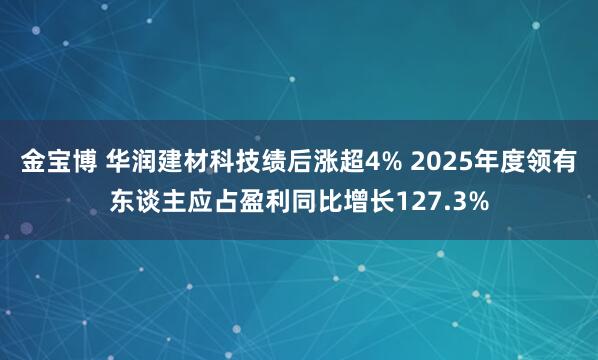 金宝博 华润建材科技绩后涨超4% 2025年度领有东谈主应占盈利同比增长127.3%