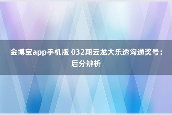 金博宝app手机版 032期云龙大乐透沟通奖号:后分辨析