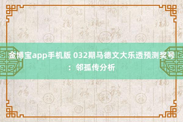金博宝app手机版 032期马德文大乐透预测奖号:邻孤传分析