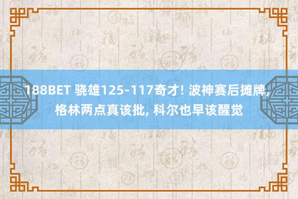 188BET 骁雄125-117奇才! 波神赛后摊牌, 格林两点真该批, 科尔也早该醒觉
