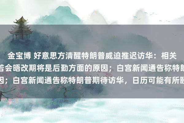 金宝博 好意思方清醒特朗普威迫推迟访华:相关报说念完全是荒唐的,若会晤改期将是后勤方面的原因;白宫新闻通告称特朗普期待访华,日历可能有所颐养