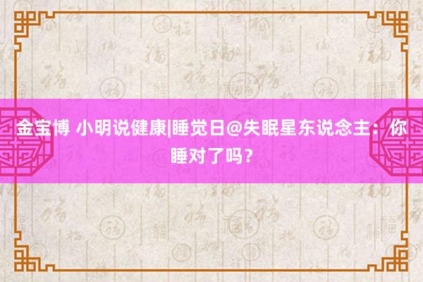 金宝博 小明说健康|睡觉日@失眠星东说念主:你睡对了吗?