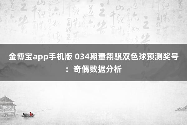 金博宝app手机版 034期董翔骐双色球预测奖号:奇偶数据分析