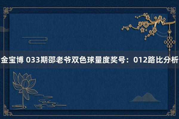 金宝博 033期邵老爷双色球量度奖号:012路比分析