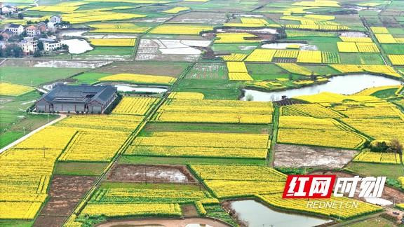 油菜花田连片开放,铺就意境好意思艳画卷。