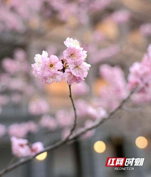 衡阳城区樱花盛放,粉黛满枝尽显春日汗漫。