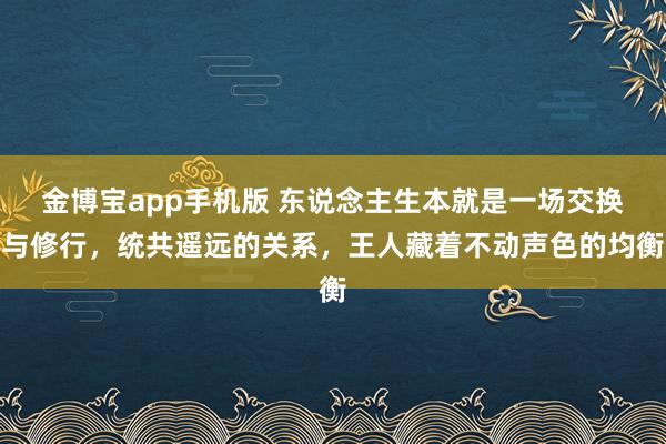 金博宝app手机版 东说念主生本就是一场交换与修行,统共遥远的关系,王人藏着不动声色的均衡