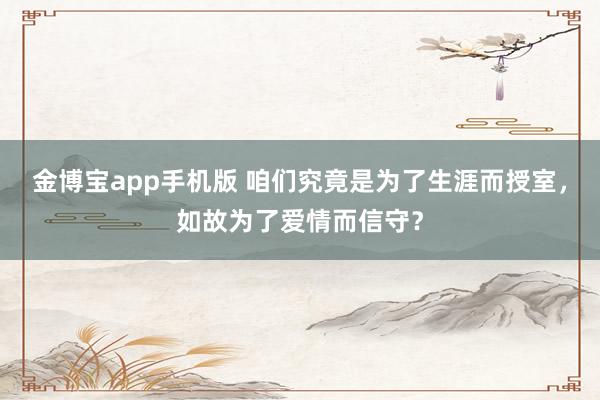 金博宝app手机版 咱们究竟是为了生涯而授室,如故为了爱情而信守?