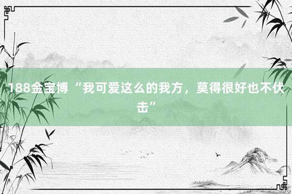 188金宝博 “我可爱这么的我方,莫得很好也不伏击”